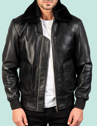 Airin G-1 Black Leather Bomber Jacket leathericonic.com