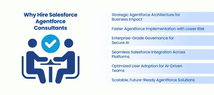 When used properly, Salesforce Agentforce enables businesses to scale intelligent automation and unlock consistent business value. Businesses that hire Salesforce Agentforce consultants gain the expertise needed to deploy secure, scalable, and future-ready AI agents.