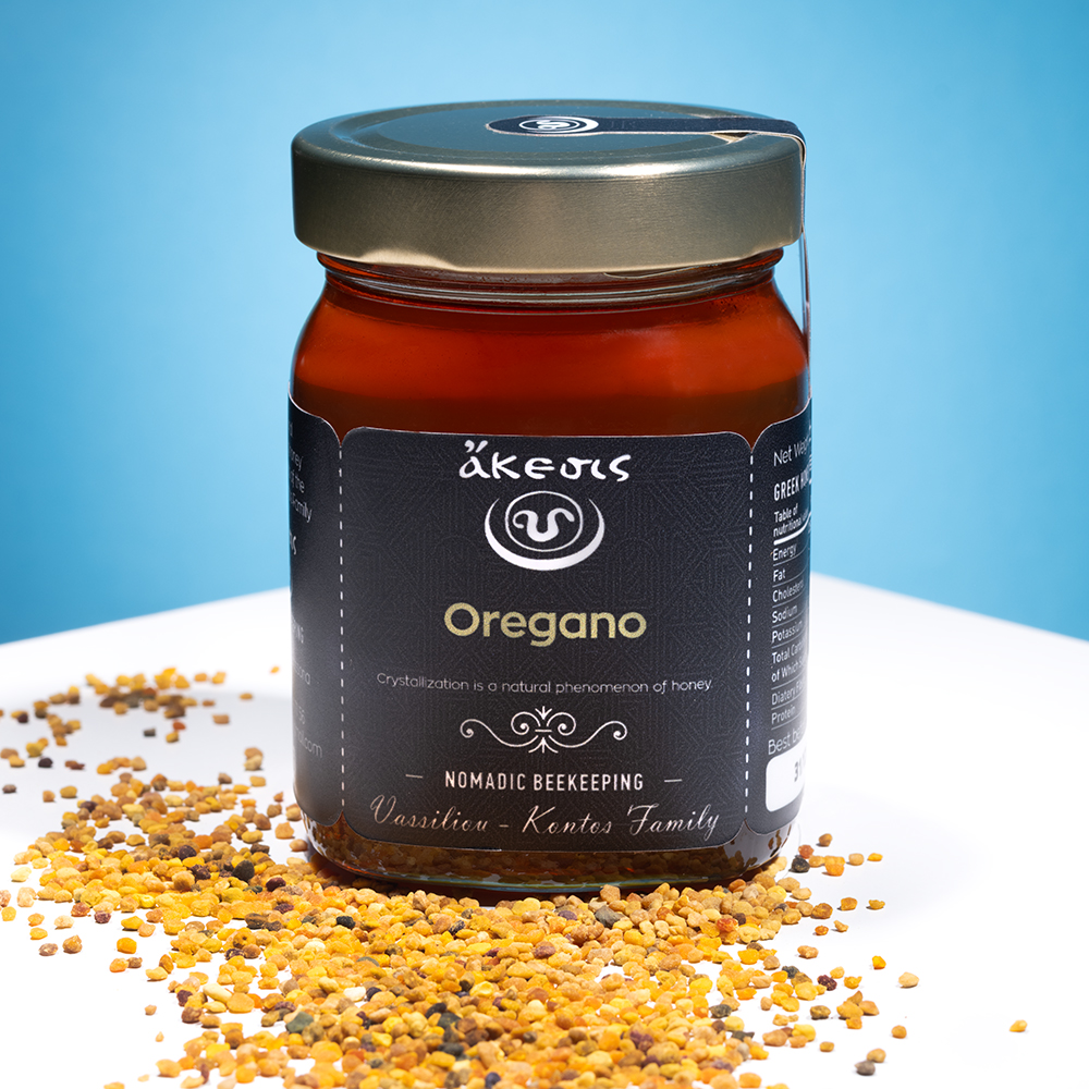 Oreganohonung är en exklusiv och sällsynt honung som produceras under en mycket kort period när oregano blommar i juli. Denna unika honung kommer från orörda bergsområden i Thessalien, där bin samlar nektar från vilda oreganoväxter. Resultatet är en honung med intensiv smak, stark arom och en imponerande näringsprofil.