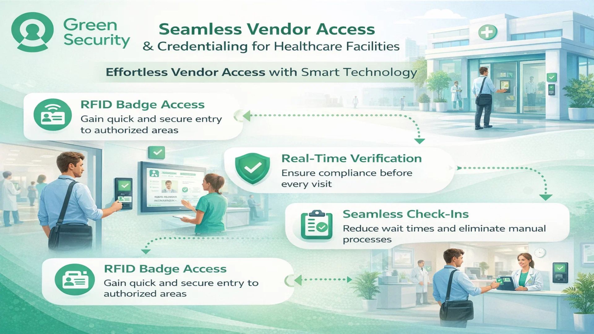 Healthcare facilities operate in fast-paced, high-stakes environments where vendor access must be both efficient and fully compliant. Green Security is transforming how vendors interact with hospitals by delivering streamlined credentialing, rapid approvals, and frictionless facility access.