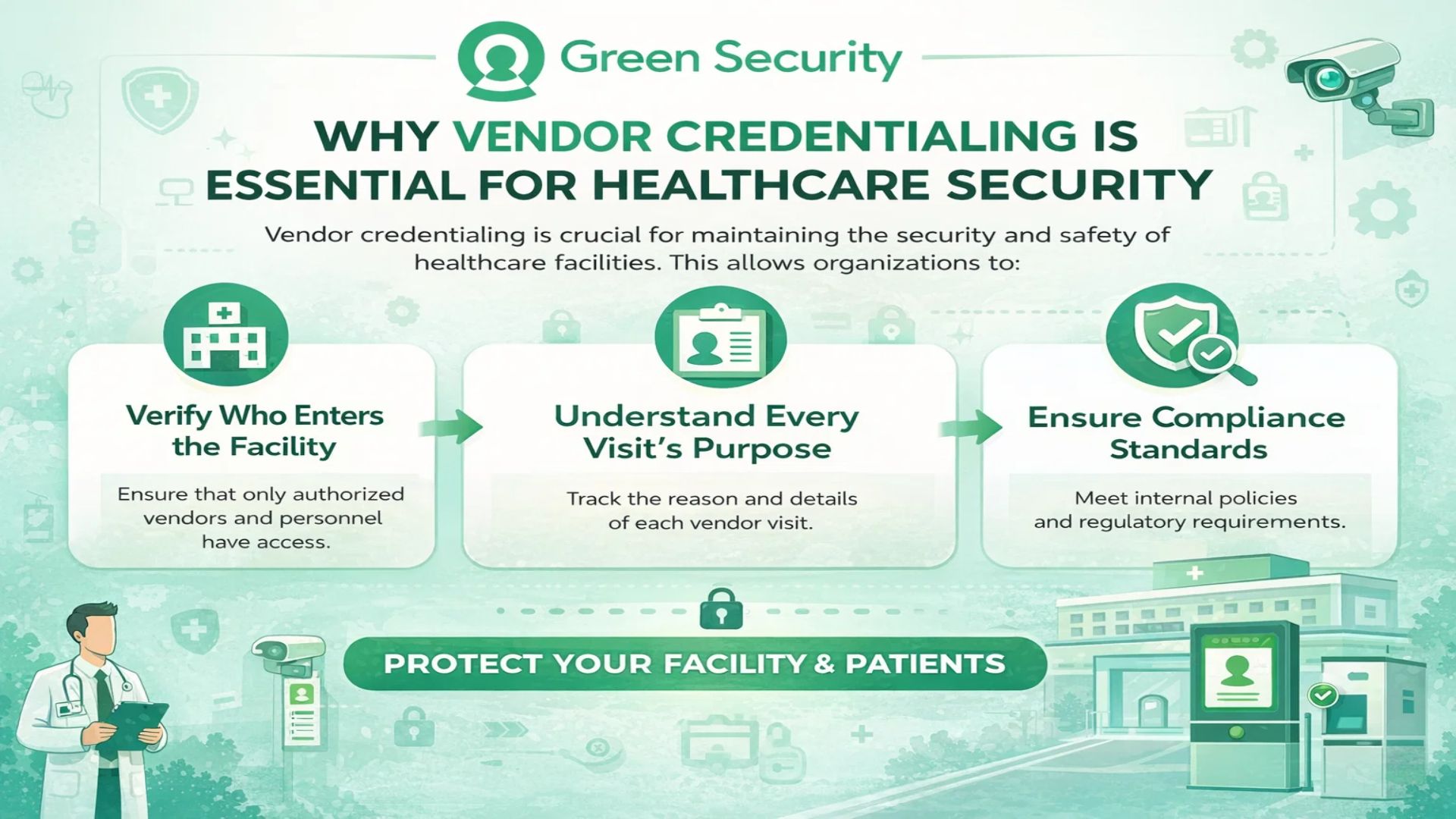 Vendor Credentialing is the foundation of a safer, compliant healthcare environment. Green Security provides the tools needed to manage access, enforce compliance, and reduce risk—all in one platform.